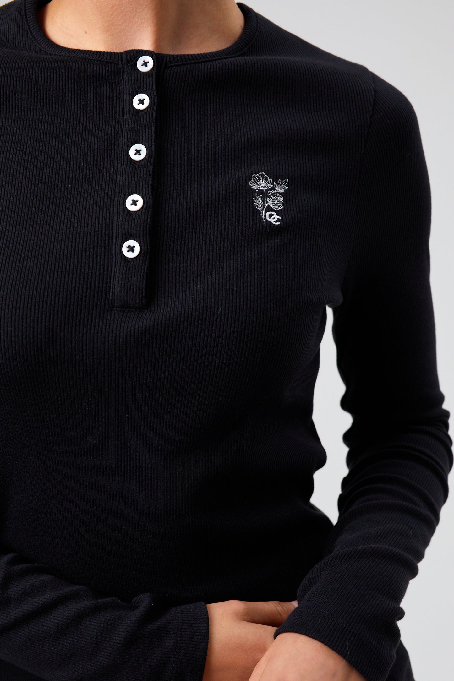 The long sleeve design is extremely flattering and crafted from a cotton rich ethically sourced fabric that is superbly soft to the touch. The tee also features special design details such as mother of pearl buttons and embroidery detailing on the left chest.